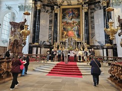 Am Samstagmorgen wurde nochmals die sankt-gallische Musikkultur der Barockzeit aufgegriffen. Die Exkursion führte die Tagungsteilnehmerinnen und -teilnehmer ins ehemalige Priorat der Fürstabtei St. Gallen, nach Neu St. Johann. Im Toggenburg wurde zunächst die ehemalige Kloster- und heutige Pfarrkirche besichtigt, deren Ausstattung dem Frühbarock zuzuordnen ist. Anschliessend führte WALTER BRÄNDLE die Gruppe in den Bibliothekskorridor mit Einbauschränken des 17. und 18. Jahrhunderts. Darin befindet sich eine bedeutende Musikaliensammlung des 18. Jahrhunderts, die mehrere Werke von komponierenden Mönchen des Klosters St. Gallen umfasst.